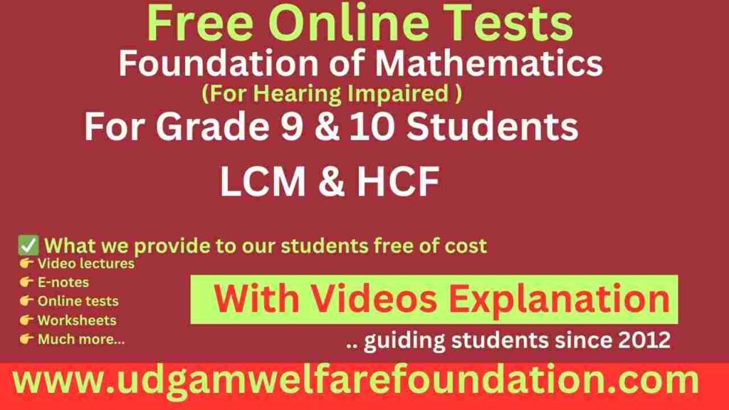 The Free Online Test on LCM & HCF for Hearing Impaired Students helps learners explore essential calculation skills. These Free math online tests for hearing impaired students include visual steps that simplify factorization. Moreover, Mathematics Study Material for Hearing Impaired Students offers clear explanations for better understanding. This combination supports mathematics for hearing impaired students effectively.